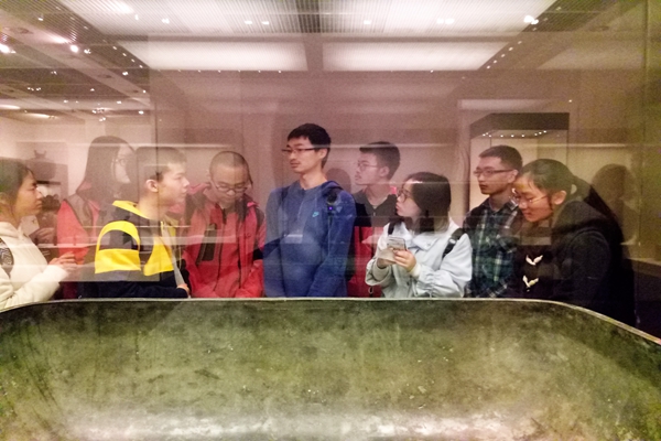29日早晨7:40,同学们准时在北京师范大学小南门集合,清点人数后,大家分为两队出发,分别前往目的地。最终两路人马在国家博物馆门口汇合,寒冷的天气对大家参观的热情并无影响。入馆后,同学们兵分两路,王泽带领的同学先进行“秦汉文明展”的参观,他以深厚的考古学和历史学功底详细地为同学们介绍了展品背后的制度与文化,鼓励大家在学习中关注考古材料,使大家对秦汉文明有了更加深刻的了解,大大拓宽了同学们的视野。而吴明明带领的同学则首先参观了“中国古代文明”的展览,他的讲解详略得当,并结合同学们所学的“中华文明”课程进行讲解,对同学们的课程学习有很大的帮助,也使同学们对中国古代文明有了新的认识。随后,两位讲解的同学交换了场地,也给了同学们自由参观的时间。