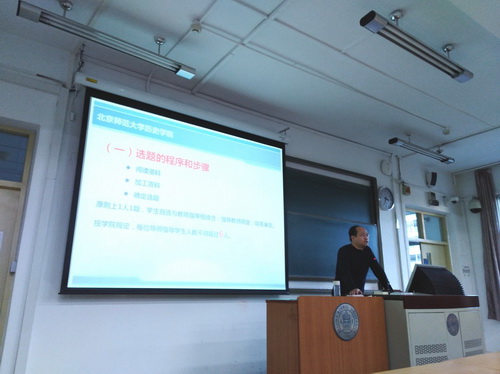 首先,姜海军老师从撰写和完成毕业论文的必要性、重要性、毕业论文写作依据、毕业论文的答辩、相关注意事项等几个方面为历史学院