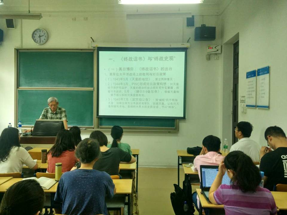 2017年6月29日上午,北京大学历史系宋成有教授应邀来到38365365体育在线投注游戏平台研究生课堂为我校研究生作了一场题为《“终战史观”评析:战后日本右翼历史观揭底》的学术讲座,参加聆听讲座的40余位研究生、博士生和部分教师来自校内各个院系,还有来我校参加访学进修的其他兄弟院校的部分学者。